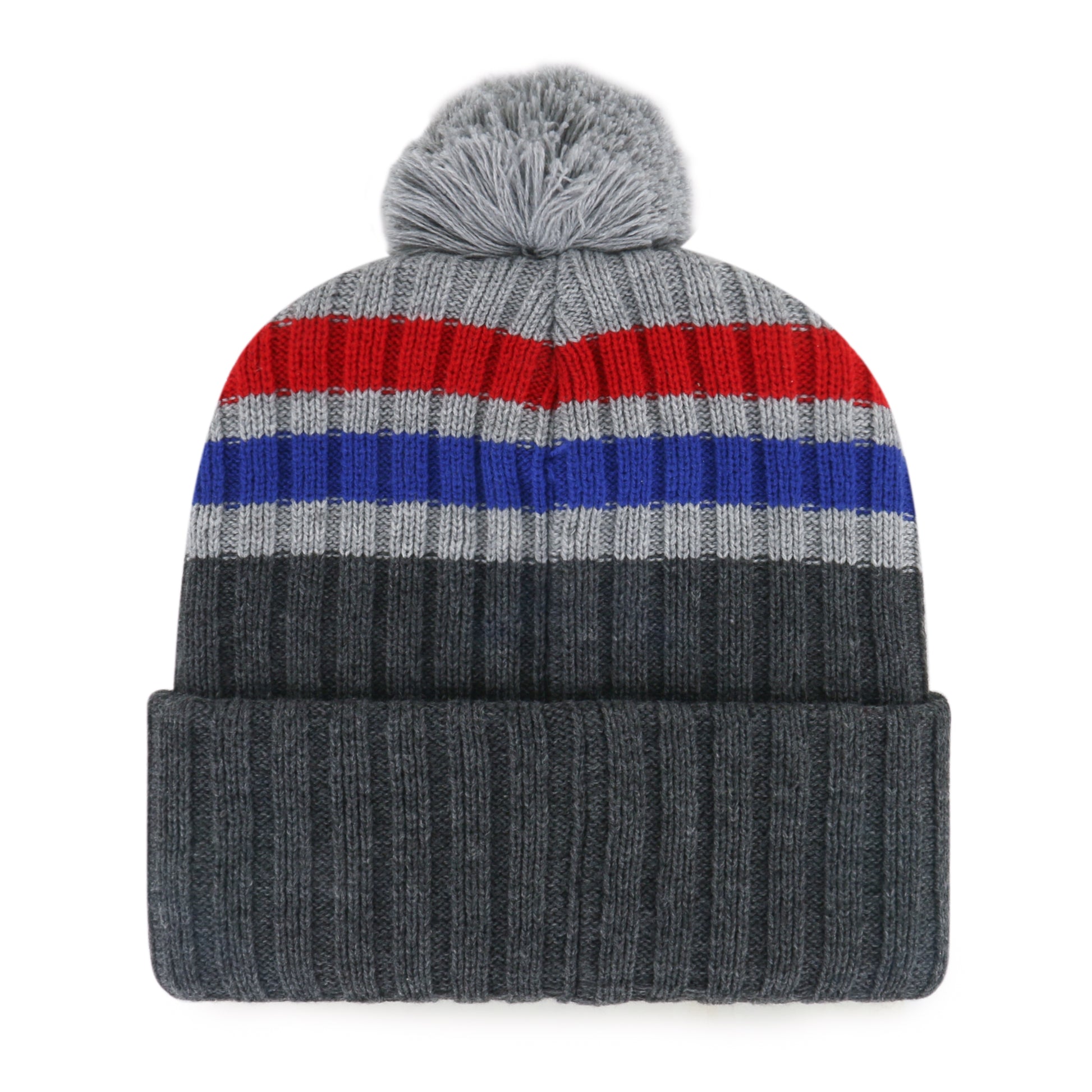 The Stack '47 CUFF KNIT is made from soft and warm acrylic yarns and microfleece with text jacquard, raised front embroidery, and a pom on top.